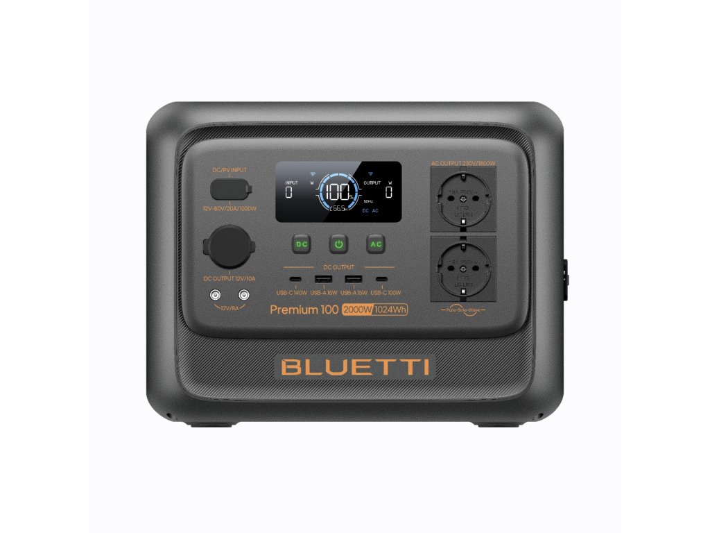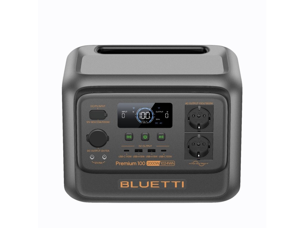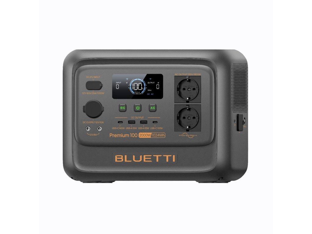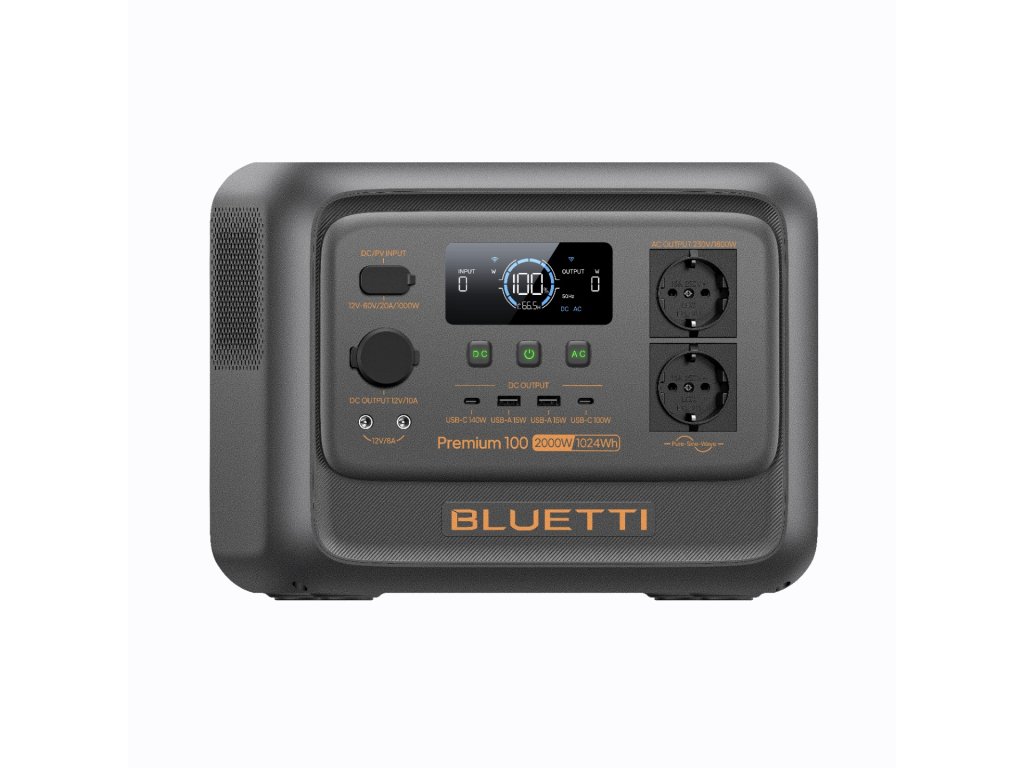 - BLUETTI PREMIUM 100 V2 je výkonná přenosná nabíjecí stanice s baterií 1024 Wh (LiFePO₄) a invertorem 1800 W, která zvládne napájet i náročnější spotřebiče. Díky rychlému nabíjení se dostane na 80 % za 45 minut a je skvělá jako záloha do domácnosti, na chatu, do karavanu i na dlouhé výlety.