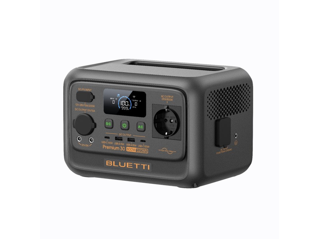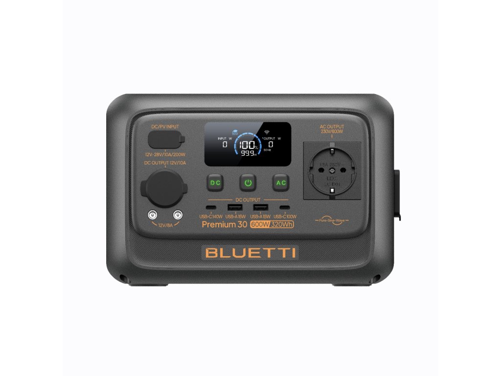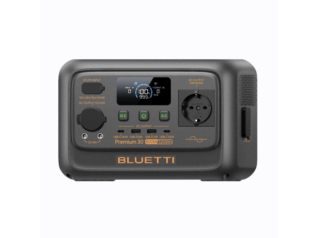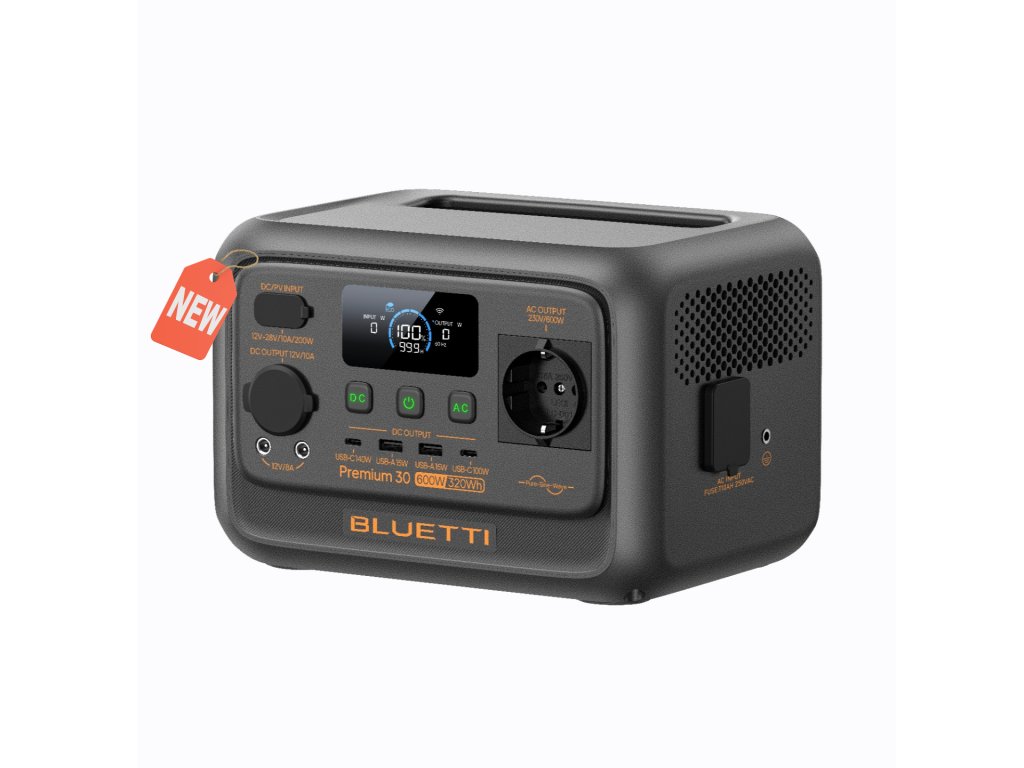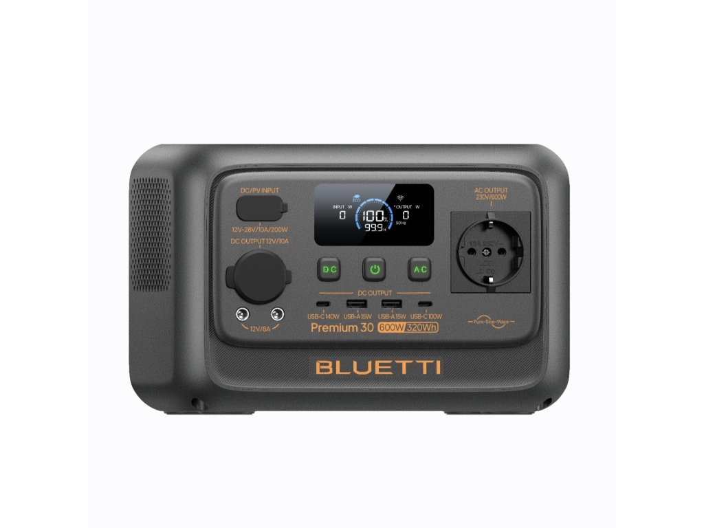- BLUETTI PREMIUM 30 V2 je kompaktní přenosná nabíjecí stanice s kapacitou 320 Wh a výstupním výkonem 600 W, která spolehlivě pokryje běžné potřeby na cestách, při kempování i jako rychlá domácí záloha. Díky rychlému AC nabíjení se dostane na 80 % za 45 minut.